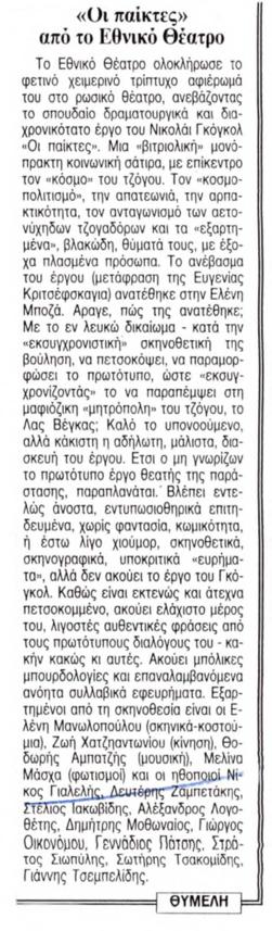 Νίκος Γιαλελής (Ίχαρεφ), Στέλιος Ιακωβίδης (Σβόχνεφ Πιοτρ Πετρόβιτς), Αλέξανδρος Λογοθέτης (Ουτεσίτελνι Στεπάν Ιβάνοβιτς).
