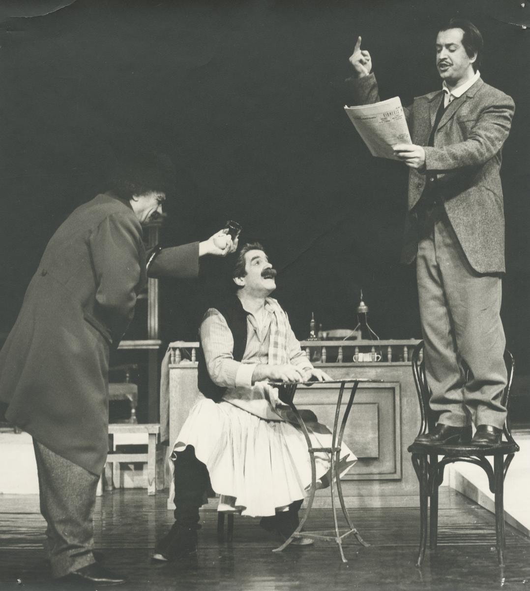 Γιάννης Λαμπρόπουλος (Αποστόλης), Κώστας Μπάλλας (Κυρ Παναγής), Τάκης Βουλαλάς (Χαρίλαος Τρικούπης).