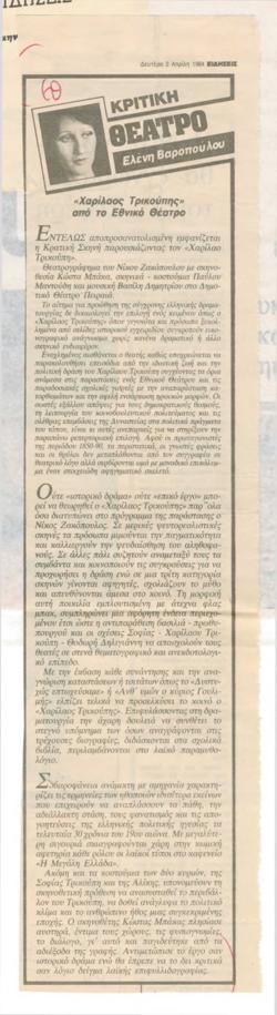 "Χαρίλαος Τρικούπης" Νίκου Ζακόπουλου. Εθνικό Θέατρο
