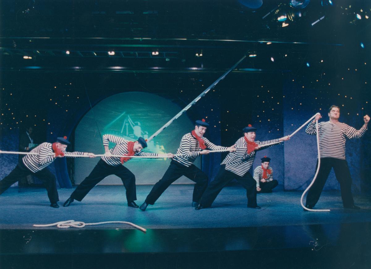 Michalis Koukoulommatis (μ.τ.ρ.), Chorche Perdikis (New York dockworker ), Pavlos Maropoulos (Fix), Giannis Trampidis (Captain Hook), Giorgos Livanos (Fox).