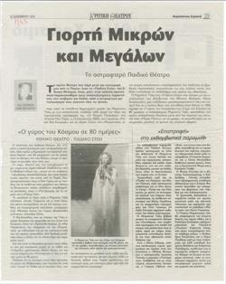 Σωκράτης Μαϊδώνης (2nd Camel jockey ) (;), Alexandros Γιάννης (Ancient Egyptian (male)), Kalliopi Kotzailia (2nd Egyptian singer (female)), Maria Gerodimou (+C11142:C11397Αρχαία Αιγύπτια), Konstantina Psoma (1st Egyptian singer (female)), Elisavet Karanasou (Αρχαία Αιγύπτ