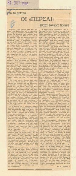 The performance of "The Persians" by Aeschylus, on the national stage. ΙΙ