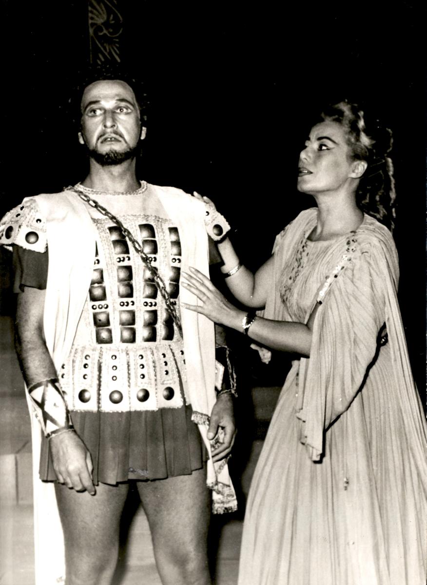 Μία σκηνή από την παράστασιν του Εθνικού Θεάτρου Τουρκίας εις το θέατρον Κοτοπούλη. Εις την φωτογ. Κουνεΐτ Γκιοκτσέρ ως Οιδίπους Τύραννος και η Μουαζές Κούρτογλου ως Ιοκάστη.