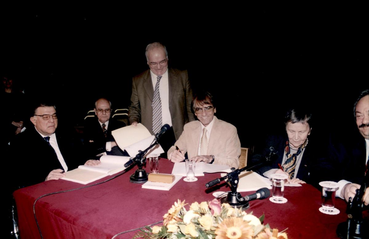 Αριστερά: Πρόδρομος Εμφιετζόγλου. Στο κέντρο: Αντώνης Βγόντζας, Νίκος Κούρκουλος Καλλιτεχνικός Διευθυντής. Δεξιά: Ελένη Γλύκατζη-Αρβελέρ Πρόεδρος Δ.Σ., Χρήστος Ζαχόπουλος.