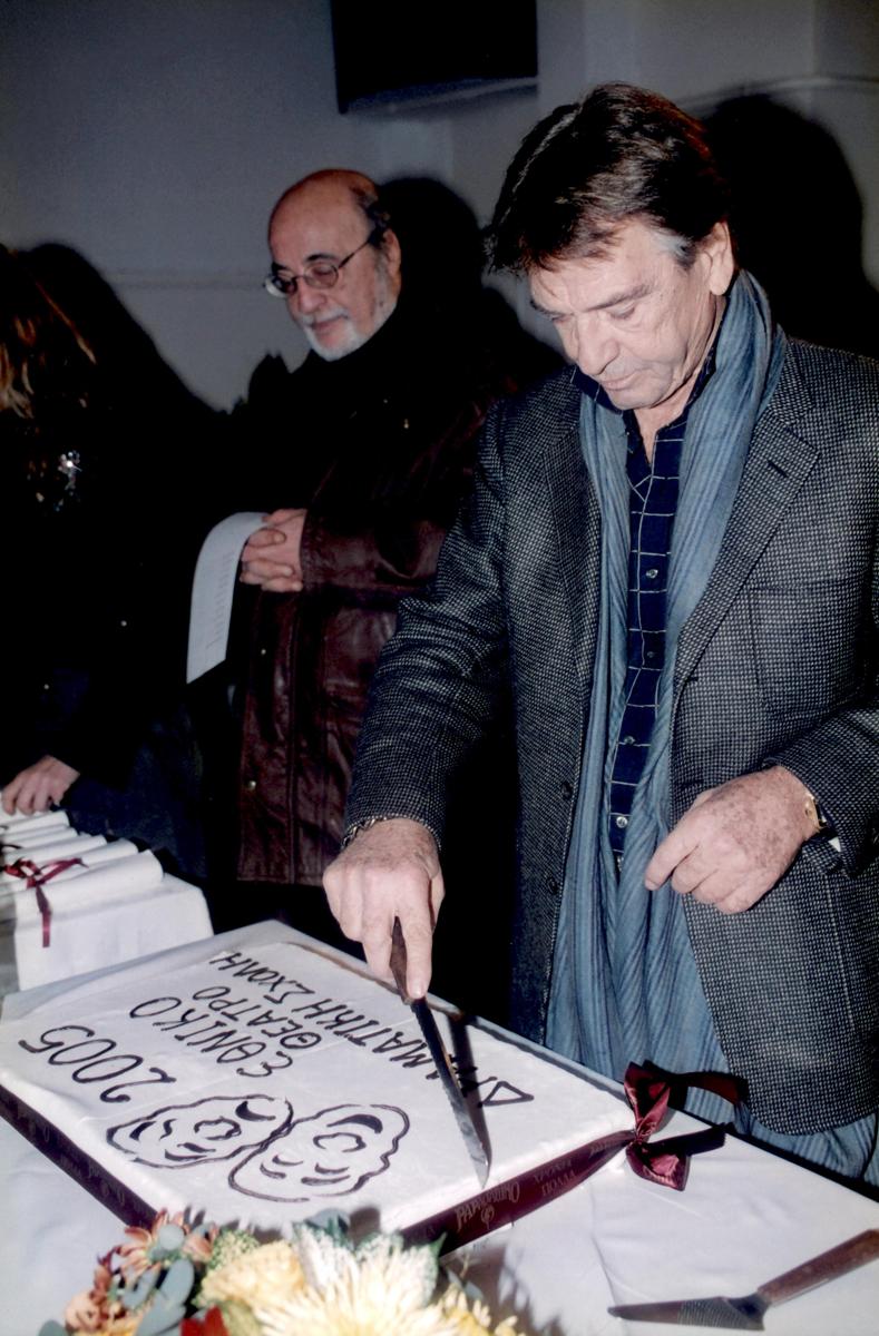 Ο Καλλιτεχνικός Διευθυντής του Εθνικού Θεάτρου Νίκος Κούρκουλος σε εκδήλωση για την κοπή πρωτοχρονιάτικης πίτας στη Δραματική Σχολή. Πίσω ο Τάσος Ρούσσος Διευθυντής της Σχολής.