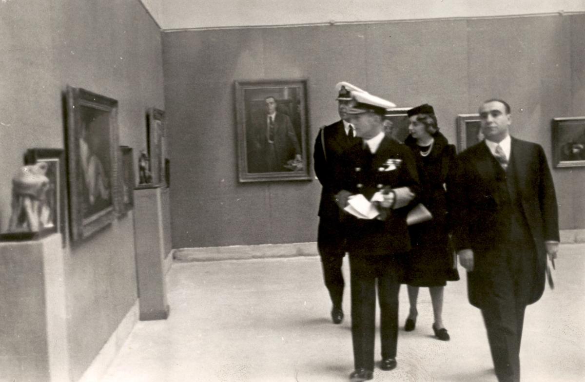 Βασιλιάς Γεώργιος Β', Κωστής Μπαστιάς. Πίσω ο Διάδοχος Παύλος.