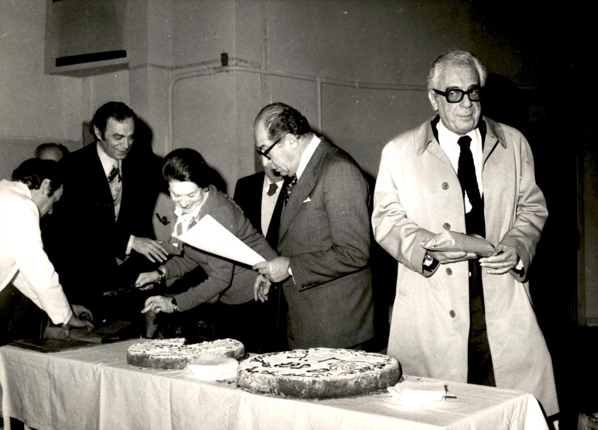 Νίκος Τζόγιας Διευθυντής της Δραματικής Σχολής, Μαίρη Αρώνη, Αλ. Θωμόπουλος, Νίκος Καρύδης.