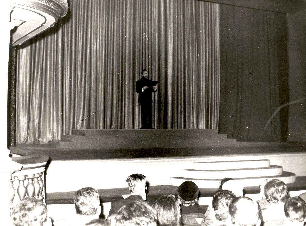 Στιγμιότυπο από την εκδήλωση στην Αίθουσα της Κεντρικής Σκηνής. Πάνω στη σκηνή: Βασίλης Παπανίκας.