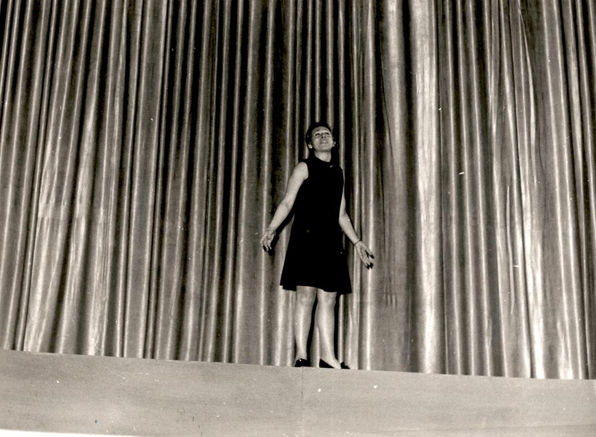 Στιγμιότυπο από την εκδήλωση στην Αίθουσα της Κεντρικής Σκηνής. Πάνω στη σκηνή: Πόπη Παπαδάκη.