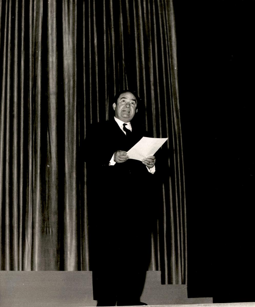 Στιγμιότυπο από την εκδήλωση στην Αίθουσα της Κεντρικής Σκηνής. Πάνω στη σκηνή: Ευάγγελος Φωτιάδης Γενικός Διευθυντής.