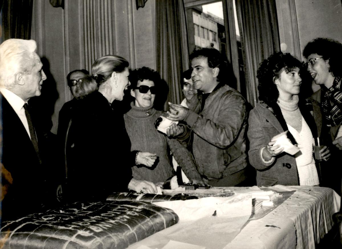 Κώστας Νίτσος Διευθυντής, Μελίνα Μερκούρη Υπουργός Πολιτισμού, Αλέκα Κατσέλη. Αριστερά: Ναταλία Τσαλίκη. Πίσω δεξιά: Ανδρέας Φιλιππίδης.