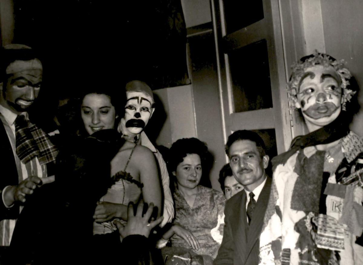 Στιγμιότυπο από την αποκριάτικη γιορτή. Αριστερά: Σπύρος Ευαγγελάτος, Αντιγόνη Γλυκοφρύδη.