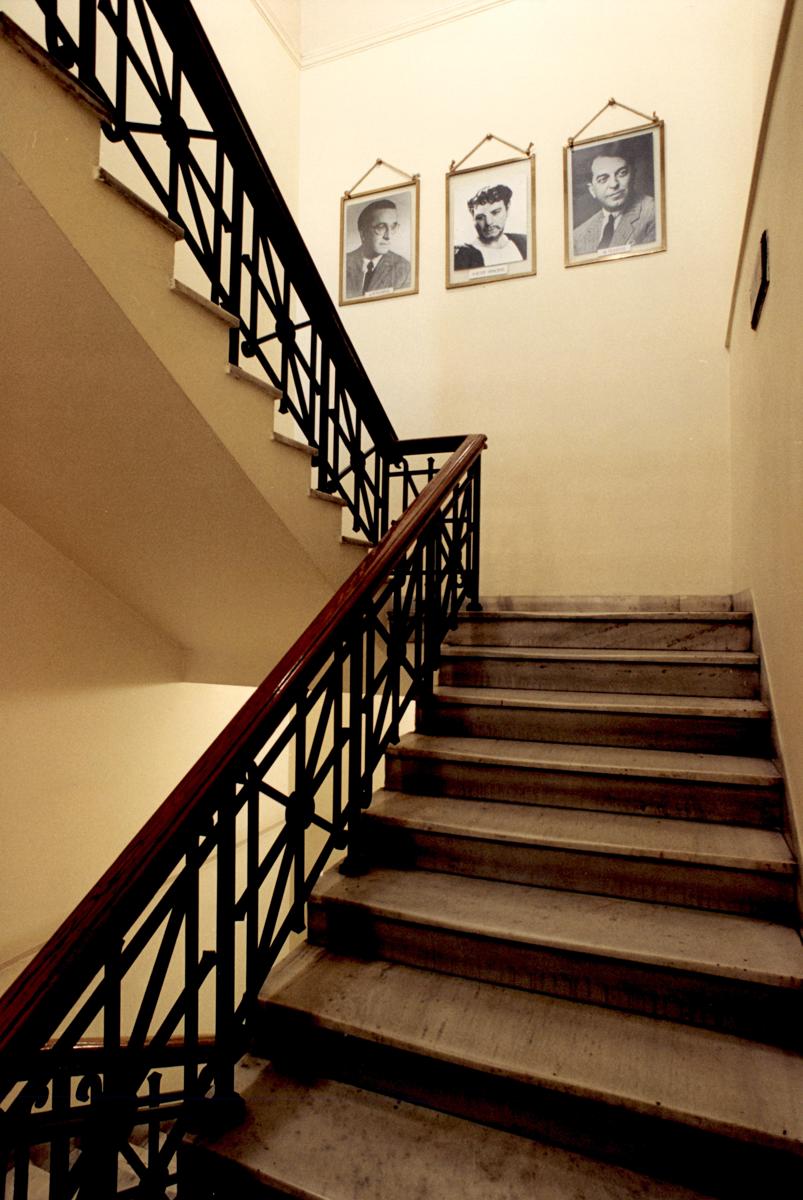 Εσωτερικό χώρος στο Κτήριο Τσίλλερ, διακρίνονται φωτογραφικά πορτρέτα των Δημήτρη Ροντήρη, Αλέξη Μινωτή και Φώτου Πολίτη.