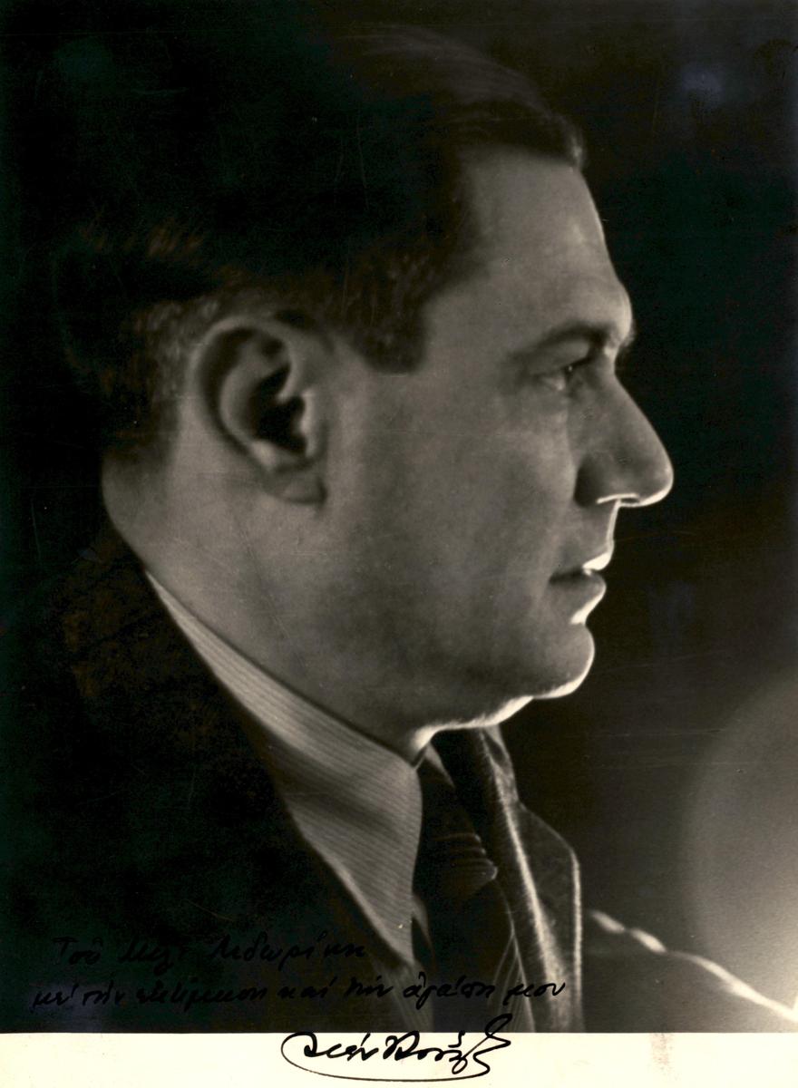 Φωτογραφικό πορτρέτο του Λέοντος Κουκούλα με αφιέρωση στον Μιλτιάδη Λιδωρίκη.