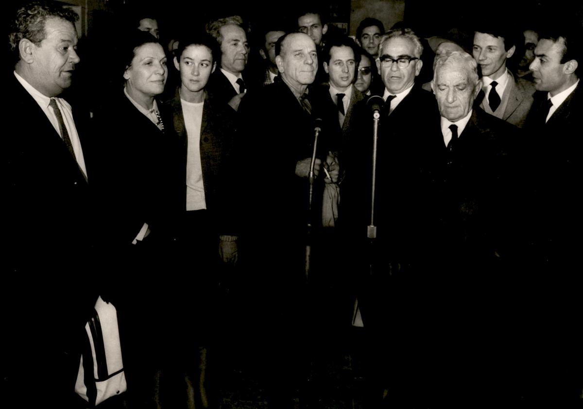 Μπροστά: Παντελής Ζερβός, Ελένη Ζαφειρίου, Βέρα Ζαβιτσιάνου, Λυκούργος Καλλέργης, Αλέξης Μινωτής, Νίκος Φιλιππόπουλος. Δεξιά: Χριστόφορος Νέζερ, Πέτρος Φυσσούν, Βασίλης Παπανίκας. Πίσω: Θοδωρος Σαρρής, Νίκος Τζόγιας.