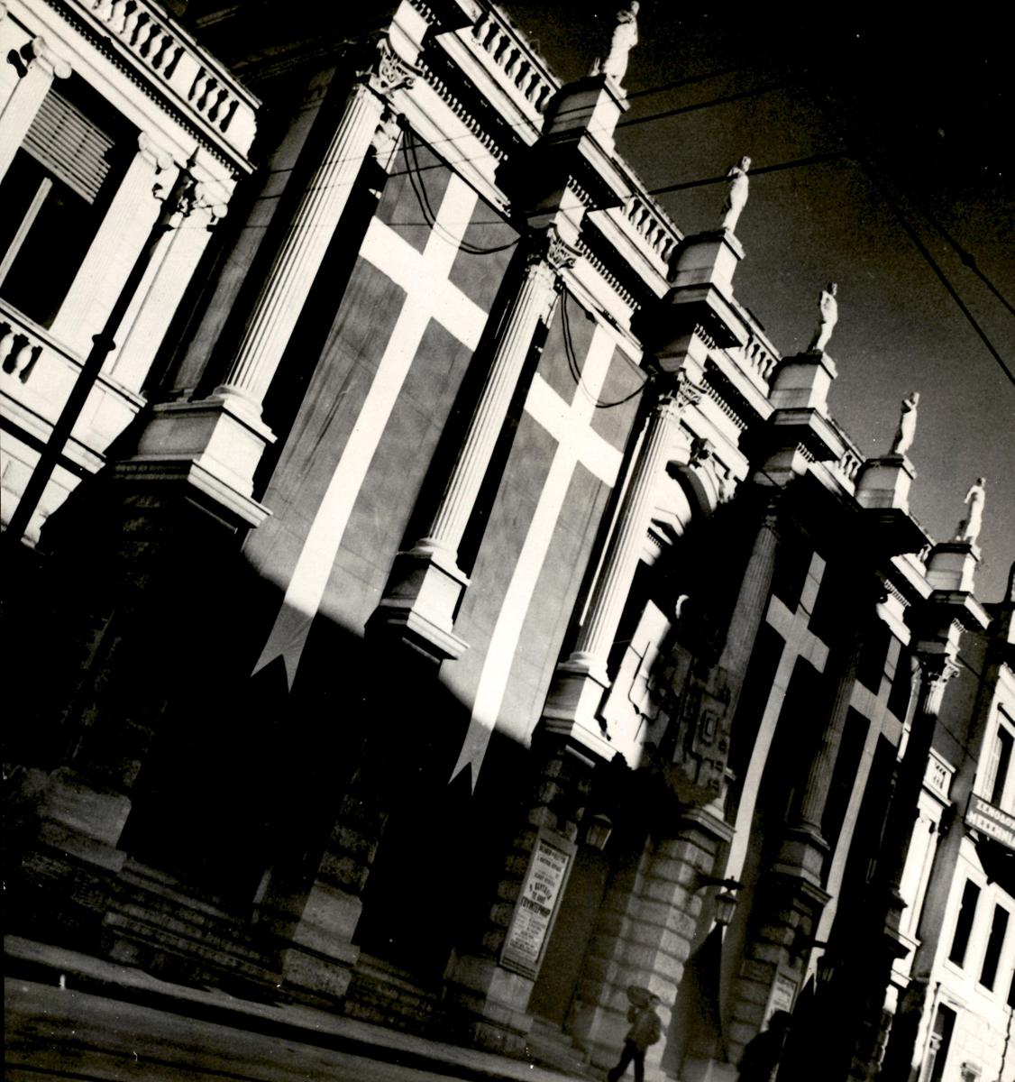 Άποψη του κτηρίου Τσίλλερ με στολισμό για τους γάμους του Διαδόχου Παύλου με την Φρειδερίκη.
