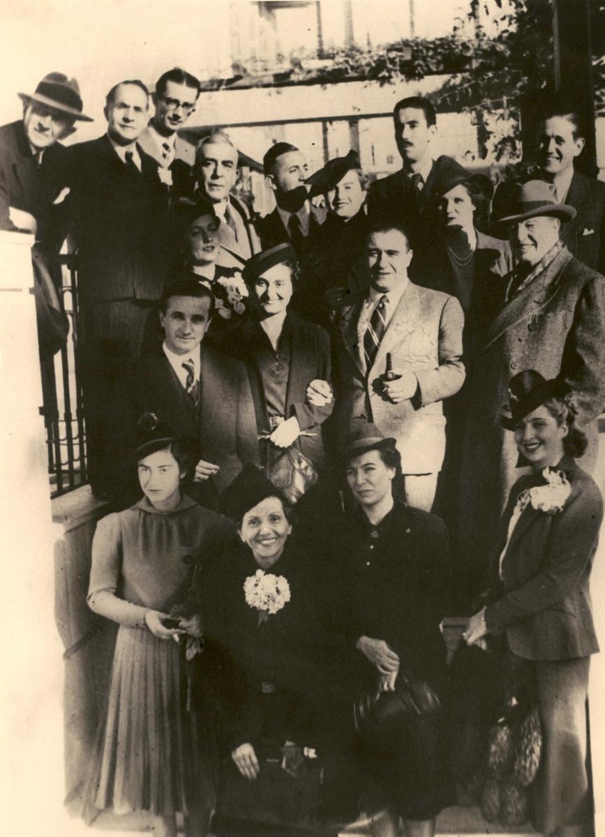 Αναμνηστικό στιγμιότυπο. Κάτω δεύτερη: Μαρίκα Κοτοπούλη. Σττο κέντρο: Δημήτρης Ροντήρης, Βάνα Ροντήρη, Κωστής Μπαστιάς. Πίσω: Μιλτιάδης Λιδωρίκης, Μήτσος Μυράτ, Άγγελος Τερζάκης, Ιωάννης Χαλκοκονδύλης, Κλεόβουλος Κλώνης, Γεώργιος Μαντζούφας, Γεώργιος Χέλμης.