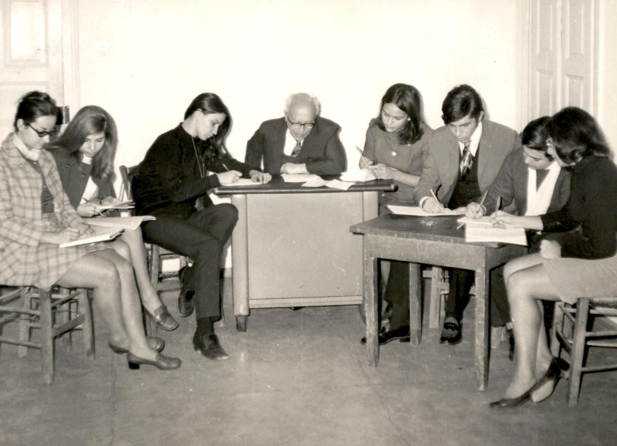 1969-1970. Την ώρα του μαθήματος Ιστορία Θεάτρου.