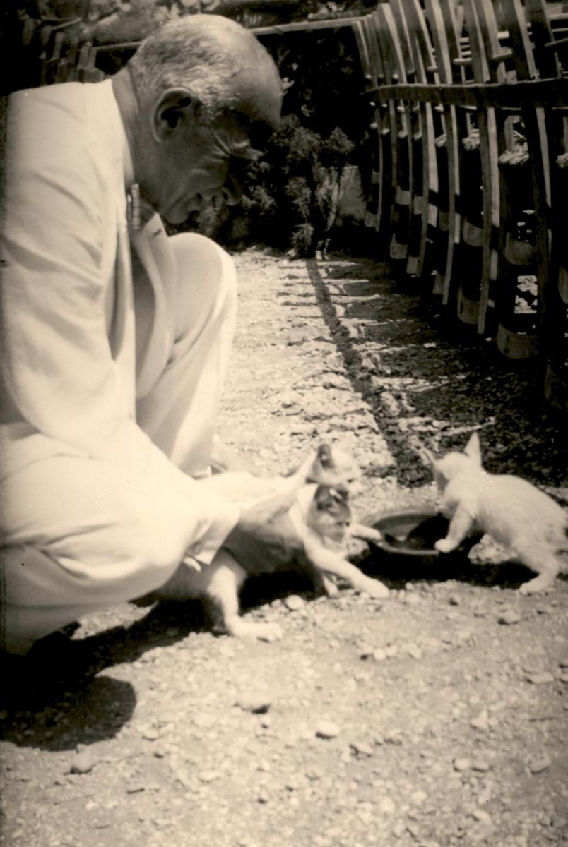 Ο Μιλτιάδης Λιδωρίκης με μικρά γατάκια.