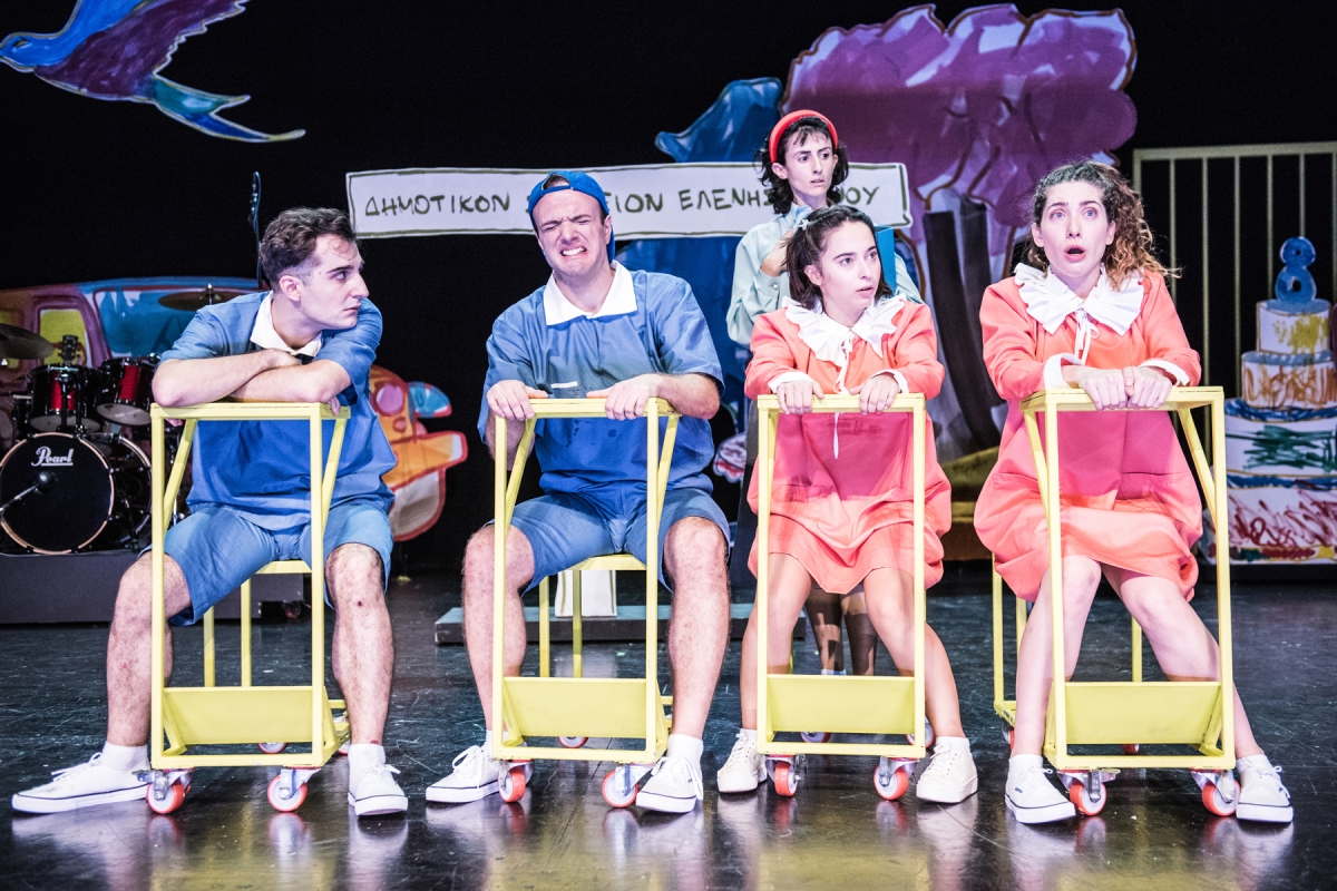 Κατερίνα Πέκη (Κυρία Ξένου) πίσω, Σταυριανός Γκάτζιος (Ζήσης), Διαμαντής Αδαμαντίδης (Πέτρος), Μαρίνα Μάλλιου (Άννα), Ανδρομάχη Φουντολίδου (Χριστίνα)